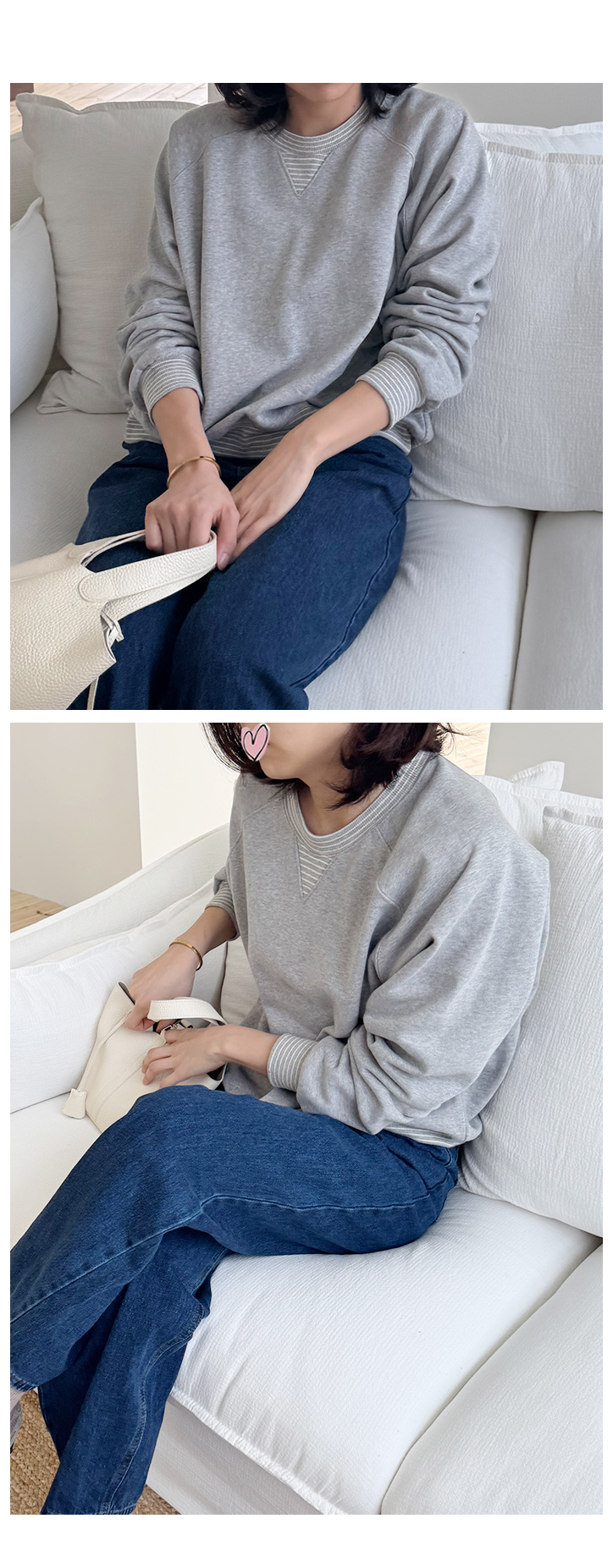 MD's COMMENT ¸ñ, ¼Ò¸Å, ¹Ø´Ü¿¡ ÀºÀºÇÏ°Ô ½ºÆ®¶óÀÌÇÁ ¹è»ö. ÀÌ°Ô »ý°¢º¸´Ù ºÐÀ§±â¸¦ ¸¹ÀÌ ¹Ù²ãÁà¿ä :) ¸· Æ¢´Â Æ÷ÀÎÆ®´Â ¾Æ´Ñµ¥ °¡±îÀÌ º¸¸é ¿¹»Ú´Ù ½ÍÀº ±×·± µðÅ×ÀÏ. Ç͵µ ¾Ö¸ÅÇÏÁö ¾Ê¾Æ¿ä. ÇÍÀº ³Ê¹« ¹Ú½ÃÇÏÁöµµ ¾Ê°í ±×·¸´Ù°í ¾îÁ¤ÂÄÇÏ°Ô ºÙÁöµµ ¾Ê¾Æ¿ä. ¾î±ú¼± ÀÚ¿¬½º·´°Ô ¶³¾îÁö°í, ¼Ò¸Å´Â »ì¦ ¿©À¯ ÀÖ°Ô, ¹Ø´ÜÀº ½Ãº¸¸®°¡ Àâ¾ÆÁ༠ÀÔÀ¸¸é ±¦È÷ ÇÍÀÌ Á¤¸®µÇ´Â ´À³¦ÀÌ¿¡¿ä. û¹ÙÁö¿¡ ÀԾ ÁÁ°í, ½½·¢½º¶û ¸ÅÄ¡ÇØµµ ±ò²ûÇϰí, ½ºÄ¿Æ®¶û ÀÔÀ¸¸é ¶Ç Àº±ÙÈ÷ ¿©¼º½º·´°í, ¾îµð¿¡³ª Àß ¾î¿ï·Á¿ä. ¸ÇÅõ¸Ç Çϳª¸¸ ÀԾ ²Ù¾È²Ù ´À³¦ Á¦´ë·Î! Ãßõµå¸³´Ï´Ù :) Size TIP Àû´çÈ÷ ¿©À¯ÀÖ´Â ÇÍÀ¸·Î 55~66ºÐµé±îÁö ÆíÇÏ°Ô Âø¿ë °¡´ÉÇØ¿ä. * ¸ðµ¨ (166/49) - Á¤55»çÀÌÁîÀÇ ¸ðµ¨¾ç¿¡°Ô ¿©À¯ÀÖ°Ô Àß ¸Â¾Ò¾î¿ä! °ñ¹Ý¼± Á¤µµ ¿À´Â ±âÀå°¨. * È¿Á¤ÁåÀå (163/62) - ÇÏüºñ¸¸ÀÇ 66»çÀÌÁîÀä. ÀÌ ¸ÇÅõ¸Ç ÀÔÀ¸¸é »óü°¡ ºÎÇØ º¸ÀÌÁö ¾Ê´õ¶ó±¸¿ä. ¾î±ú¼±ÀÌ ÀÚ¿¬½º·´°Ô ¶³¾îÁ®¼ ¾î±ú ³Ð¾î º¸ÀÌ´Â ´À³¦ ¾ø±¸¿ä, ¹Ø´Ü ½Ãº¸¸®°¡ »ì¦ Àâ¾ÆÁִϱî Ç㸮¼±µµ Á¤¸®µÇ´Â ´À³¦ÀÌ ÀÖ¾î¿ä. °¡²û ¹è ¶§¹®¿¡ ½º¸Ö½º¸Ö ¿ÊÀÌ ¿Ã¶ó°¡¼ °è¼Ó ³»¸®´À¶ó ¹Ù»Ü ¶§ Àִµ¥.. ÀÌ ¸ÇÅõ¸ÇÀº ¹è°¡ ³ª¿Íµµ À§·Î ¸»·Á ¿Ã¶ó°¡´Â ´À³¦ °ÅÀÇ ¾ø¾ú¾î¿ä.¤¾¤¾ °ÃßÇÕ´Ï´Ù! Color & Fabric Ä÷¯´Â ¿ÀÆ®¹Ð/¸á¶õÁö±×·¹ÀÌ. ÀÌ·¸°Ô µÎ °¡Áö ³ª¿Ô±¸¿ä. µÎ Ä÷¯ ¸ðµÎ ƯÈ÷ µ¥´ÔÀ̶û Âû¶±ÀÌ¿¡¿ä. ¿ÀÆ®¹ÐÀº Á¶±Ý ´õ ºÎµå·´°í ¿©¼º½º·¯¿î ´À³¦, ¸á¶õÁö ±×·¹ÀÌ´Â ±ò²ûÇÏ°í ´ã¹éÇÑ µ¥Àϸ® ¹«µå. À¯Çà Ÿ´Â µðÀÚÀÎ ¾Æ´Ï°í ³»³â¿¡µµ, ±× ´ÙÀ½ÇØ¿¡µµ °è¼Ó ²¨³» ÀÔÀ» ±âº»ÅÛÀÌ¿¡¿ä. °ÃßÇÕ´Ï´Ù!