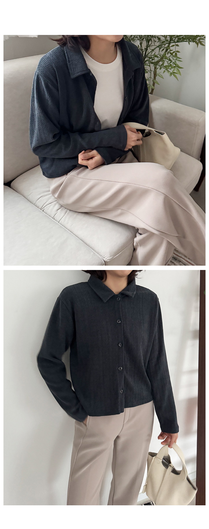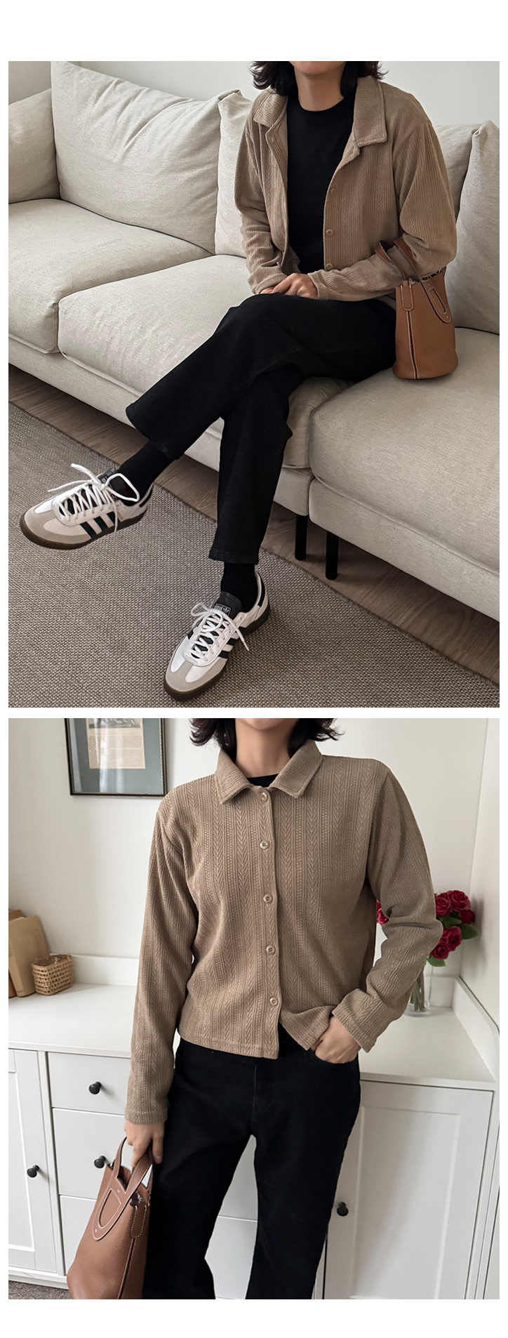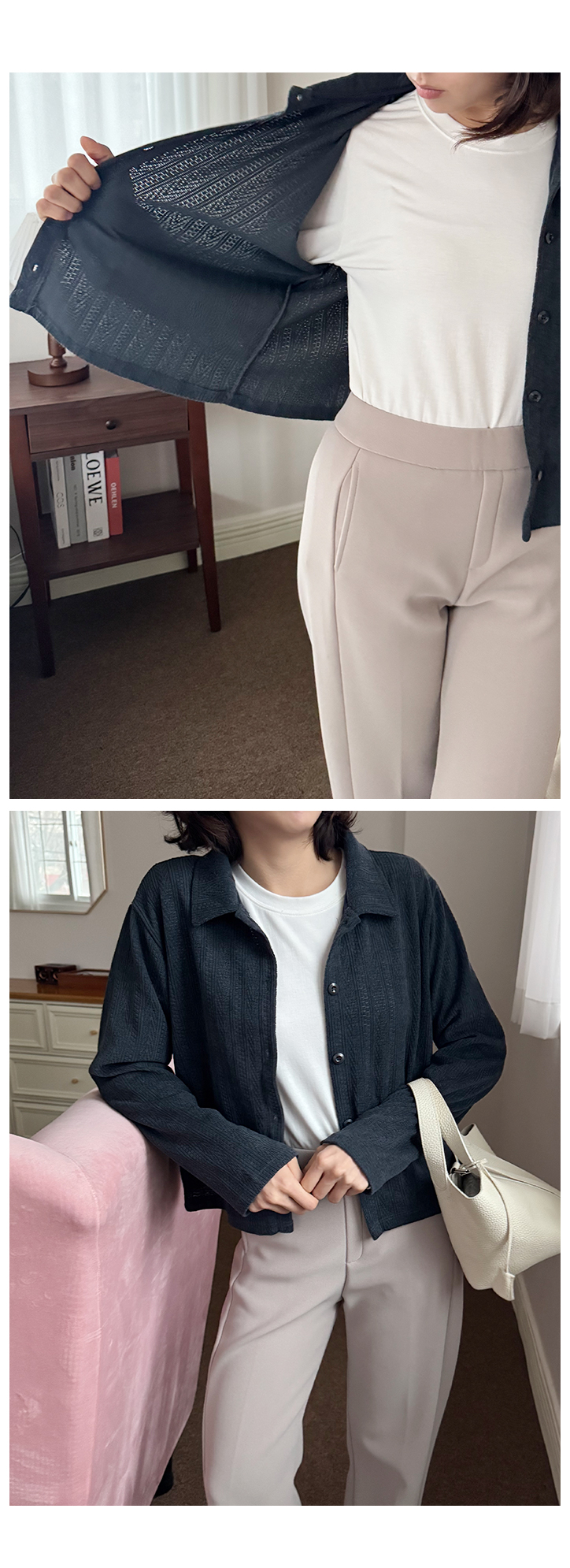 MD's COMMENT À̰Ŵ¿ä, ÇÑ °Ü¿ï¿¡ ¾Æ¿ìÅÍ ¾È¿¡ ÀԱ⠵ü ÁÁÀº °¡µð°ÇÀÌ¿¡¿ä. µÎÅùÇÑ ´ÏƮó·³ ºÎÇǰ¨Àº ¾ø°í ±×·¸´Ù°í ³Ê¹« ¾ã¾Æ¼ ÇãÀüÇÑ ´À³¦µµ ¾Æ´Ï¶ó Áö±Ýó·³ Ãß¿ï ¶§ ÆÐµùÀ̳ª ÄÚÆ® ¾È¿¡ ÀÔ±â ÁÁ¾Æ¿ä. ÀÚ°¡µå Á¶Á÷À̶ó ±âº» °¡µð°Çº¸´Ù ÈξÀ ºÐÀ§±â°¡ ÀÖ°í, Ä«¶ó µðÀÚÀÎ ´öºÐ¿¡ ¼ÅÃ÷ó·³ ´ÜÁ¤ÇÑ ´À³¦µµ »ì¾Æ³ª¿ä. ±×·¡¼ ±×³É Ƽ À§¿¡ ÀԾ ³Ê¹« ijÁÖ¾óÇØ º¸ÀÌÁö ¾Ê±¸¿ä, Ãâ±ÙÇÒ ¶§³ª ¿ÜÃâÇÒ ?? ¿Ê Â÷·ÁÀÔÀº ´À³¦ÀÌ È®½ÇÈ÷ ³ª¿ä. ¹öư ´Ù Àá°¡¼ ´ÜÁ¤ÇÏ°Ô ÀԾ ±¦Âú°í, ¹öư Ç®¾î¼ ÆíÇÏ°Ô ÀԾ ¾î»öÇÏÁö ¾Ê¾Æ¼ ÄÚµð °í¹Î ¾øÀÌ ¼ÕÀÌ ÀÚÁÖ °¡´Â ½ºÅ¸ÀÏÀÌ¿¡¿ä. Size TIP »ì¦ ¿©À¯ ÀÖÀ¸¸é¼ ¸ö¿¡ Àû´çÈ÷ ¸Â´Â ÇÍÀ̶ó 55~66ºÐµé±îÁö Ãßõµå·Á¿ä. * ¸ðµ¨ (166/49) - Á¤55»çÀÌÁîÀÇ ¸ðµ¨¾ç¿¡°Ô ¿©À¯ÀÖ°Ô Àß ¸Â¾Ò¾î¿ä! °ñ¹Ý »ì¦ µ¤´Â ±æÀ̰¨. * È¿Á¤ÁåÀå (163/62) - ÇÏüºñ¸¸ÀÇ 66»çÀÌÁîÀä. ¸ö¿¡ ´Þ¶óºÙÁö ¾Ê°í Åö ¶³¾îÁö´Â ÇÍÀ̶ó ºÎ´ã ¾øÀÌ ÀԱ⠱¦Âú¾Ò¾î¿ä. ¾î±ú¼±Àº °úÇÏÁö ¾Ê°Ô Á¤¸®µÅ ÀÖ°í, ǰÀº ¿©À¯ ÀÖÁö¸¸ º¡º¡ÇØ º¸ÀÌÁö´Â ¾Ê¾Æ¼ ¾Æ¿ìÅÍ ¾È¿¡ À̳ʷΠÀԱ⿡ µüÀÌ¿¡¿ä. ƯÈ÷ ÀÚ°¡µå Á¶Á÷ ´öºÐ¿¡ ´Ü»öÀε¥µµ ÀüÇô ¹Ô¹ÔÇÏÁö ¾Ê±¸¿ä. ¼ÅÃ÷ó·³ ´ÜÁ¤Çѵ¥ ´ÏÆ® ƯÀ¯ÀÇ ºÎµå·¯¿ò°ú À¯¿¬ÇÔÀÌ ÀÖ¾î¼ Áö±Ý °èÀý¿£ ´õ ¼ÕÀÌ ÀÚÁÖ °¡¿ä. ±¦È÷ ·¹À̾îµå ¾È ÇØµµ À̰ŠÇϳª¸¸ ÀԾ ÃæºÐÈ÷ Æ÷ÀÎÆ® µÇ´Â ´À³¦! Color & Fabric Ä÷¯´Â ¸ðÄ«ºê¶ó¿î/Â÷Äݳ×À̺ñ. ÀÌ·¸°Ô µÎ °¡Áö ³ª¿Ô±¸¿ä. ¸ðÄ«ºê¶ó¿îÀº µû¶æÇÏ°í ºÎµå·¯¿î ºÐÀ§±â¶ó ƯÈ÷ ¾ÆÀ̺¸¸®, º£ÀÌÁö °è¿°ú Àß ¾î¿ï¸®±¸¿ä, Â÷ÄÝ ³×À̺ñ´Â ºí·¢º¸´Ù ´ú ¹«°Å¿ö¼ ¾Æ¿ìÅÍ ¾È¿¡ ÀÔ±â ÁÁÀº Ä÷¯¿¹¿ä. ÀÚ°¡µå Á¶Á÷ÀÌ¶ó ¿ø´ÜÀÌ ¹Ô¹ÔÇÏÁö ¾Ê°í, »ì? ÅºÅºÇØ¼ ³Ê¹« Èå¹°°Å¸®´Â ´À³¦Àº ¾ø¾î¿ä. ¹°¼¼Å¹µµ °¡´ÉÇØ¼ µ¥Àϸ®·Î ÀԱ⿡µµ ºÎ´ã ¾ø´Â ¼ÅÃ÷ °¡µð°ÇÀÌ¿¡¿ä. :)
