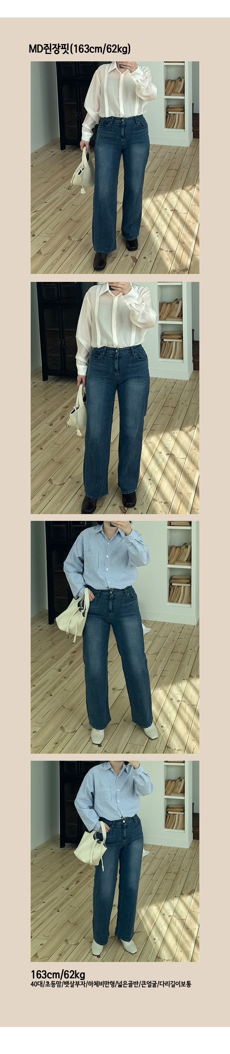 MD's COMMENT ÀÌ ¹ÙÁö´Â ÀÔÀÚ¸¶ÀÚ ´Ù¸®°¡ °ð¾Æ º¸ÀÌ´Â ÇÍÀ̶ó ÃÔ¿µÇϸ鼵µ °è¼Ó "À̰ŠÀß ³ª¿Ô´Ù" ¾ê±âÇß´ø µ¥´ÔÀÌ¿¡¿ä. Çã¹÷ÁöºÎÅÍ ¹Ø´Ü±îÁö °úÇÏ°Ô ³ÐÁö ¾ÊÀº ¼¼¹ÌÅë ÀÏÀÚ ¶óÀÎÀ̶ó Åë¹ÙÁö ºÎ´ã½º·¯¿î ºÐµéµµ ÆíÇÏ°Ô ÀÔ±â ÁÁ°í ±×·¸´Ù°í ÀÏÀÚó·³ ºÙÁöµµ ¾Ê¾Æ¼ ´Ù¸® ¶óÀÎÀ» ¿¹»Ú°Ô Á¤¸®ÇØÁà¿ä. Áßû ¿ö½ÌÀÌ °úÇÏÁö ¾Ê°Ô µé¾î°¡ ÀÖ¾î¼ »óÀÇ Ä÷¯¸¦ °ÅÀÇ ¾È Ÿ¿ä. ¾îµð¿¡ ¸ÅÄ¡ÇØµµ Äڵ𰡠±ò²ûÇÏ°Ô ¶³¾îÁö´Â »ö°¨! Ç㸮´Â ¼Ó¹êµùÀ̶ó ÀÔÀ¸¸é È®½ÇÈ÷ ÆíÇϱ¸¿ä, ¿ø´Ü ÀÚü¿¡µµ ½ºÆÇ³¢°¡ ÀÖ¾î¼ Àå½Ã°£ ÀÔ°í À־ ´ä´äÇÑ ´À³¦ ¾ø°í, ¾É¾Ò´Ù ÀϾ ¶§µµ ºÎ´ãÀÌ ´úÇØ¼ Á¤¸» ÆíÇØ¿ä. ±âÀåµµ º¹¼þ¾Æ»À »ì¦ µ¤´Â Á¤µµ¶ó Ç÷§, ·ÎÆÛ, ½º´ÏÄ¿Áî ´Ù Àß ¾î¿ï¸®°í °èÀý Å©°Ô ¾È Ÿ´Â ±âº» ÇÍÀ̶ó Áö±ÝºÎÅÍ ÃÊ¿©¸§, ±×¸®°í °¡À»±îÁö ²ÙÁØÈ÷ ÀÔ±â ÁÁÀº µ¥´ÔÀÌ¿¡¿ä :) Size TIP »çÀÌÁî´Â S/M/L ¼¼ »çÀÌÁî ³ª¿Ô´Âµ¥¿ä, Á¤»çÀÌÁî·Î ³ª¿Í¼ Æò¼Ò ÀÔ´Â »çÀÌÁî´ë·Î ¼±ÅÃÇÏ½Ã¸é ¿¹»Û ÇÍÀ¸·Î Àß ¸ÂÀ¸½Ç °Å¿¹¿ä. * ¸ðµ¨ (166/49) - Á¤55»çÀÌÁîÀÇ ¸ðµ¨¾ç¿¡°Ô ¿©À¯ÀÖ´Â ÇÍÀ¸·Î Àß ¸Â¾Ò¾î¿ä! ¹ß¸ñ µ¤´Â ±âÀå°¨. * È¿Á¤ÁåÀå (163/62) - ÇÏüºñ¸¸ÀÇ 66»çÀÌÁîÀä. Çã¹÷Áö°¡ ºÙÁö ¾Ê°í Åö ¶³¾îÁö´Â ÇÍÀ̶ó ÀÔ¾úÀ» ¶§ ÈξÀ ÆíÇß±¸¿ä, ¼Ó¹êµù ´öºÐ¿¡ Ç㸮µµ Á¶ÀÌÁö ¾Ê°í ¾ÈÁ¤°¨ ÀÖ°Ô ¸Â¾Ò¾î¿ä. ÅëÀÌ °úÇÏÁö ¾Ê¾Æ¼ µ¥Àϸ®·Î ÀÔ±â ÁÁ´õ¶ó±¸¿ä. ¹«¾ùº¸´Ù ÀÔ¾úÀ» ¶§ ´Ù¸®°¡ °ð°í ½½¸²ÇØ º¸ÀÌ´Â ÇÍÀÌ¶ó °³ÀÎÀûÀ¸·Î ¸¸Á·µµ°¡ ³ô¾Ò´ø ¹ÙÁö¿¹¿ä. °ÃßÇÕ´Ï´Ù! Color & Fabric Ä÷¯´Â Áßû. ÇÑ °¡Áö ³ª¿Ô±¸¿ä. °èÀý Å©°Ô ¾È Ÿ´Â ±âº» Áßû ¿ö½ÌÀ̶ó »óÀÇ ¸ÅÄ¡Çϱ⠽¬¿î Ä÷¯¿¹¿ä. ÄÚÆ° 98%, ½ºÆÇ 2% È¥¹æÀ¸·Î źźÇÑ µ¥´ÔÀº »ì¸®¸é¼ Âø¿ë°¨Àº ÆíÇÏ°Ô Àâ¾ÆÁØ ¼ÒÀ翹¿ä. ¿ø´ÜºÎÅÍ ¸¶°¨±îÁö ÀúÈñ ¿À·¡ °Å·¡Çؿ û¹ÙÁö Àü¹® °Å·¡Ã³ Á¦Ç°À̶ó Ä÷¸®Æ¼´Â ¹Ï°í ÀÔÀ¸¼Åµµ ÁÁ¾Æ¿ä :)