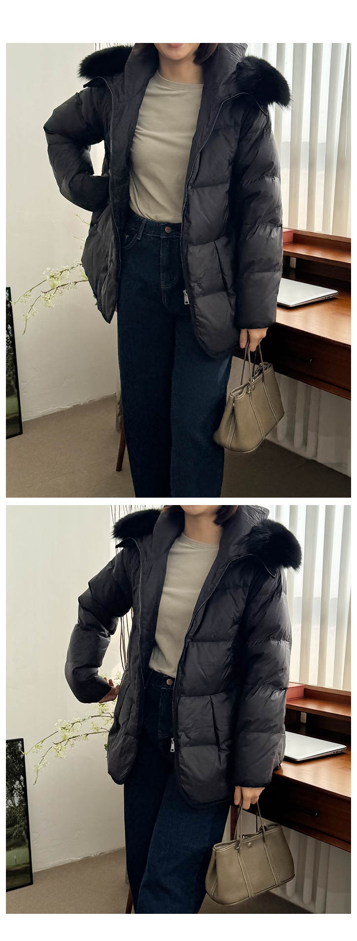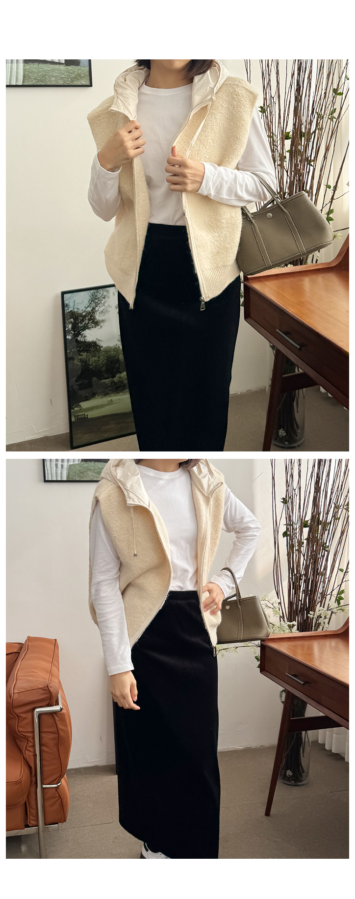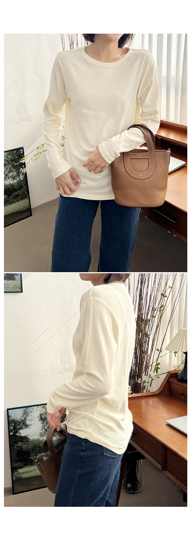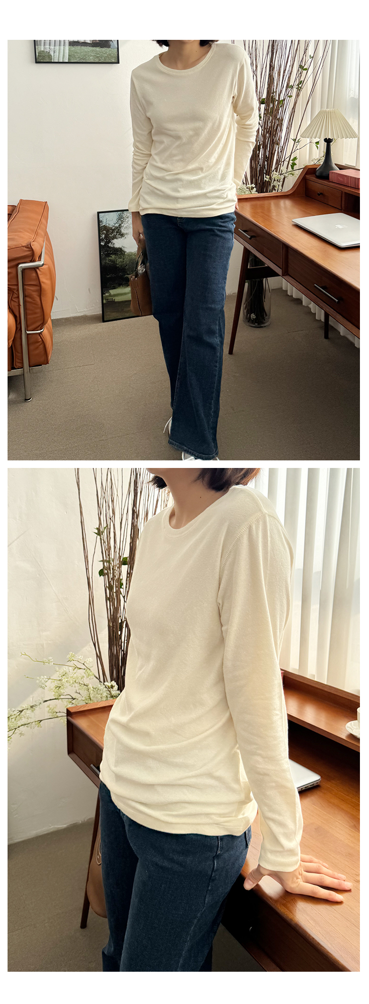 MD's COMMENT °Ü¿ï ±âº»Æ¼ ãÀ¸¼Ì´Ù¸é, ÀÌ º¸¼Û Ƽ´Â ²À ÀԾ¼¼¿ä. °Ñ¸éÀÌ »ì¦ º¸¼ÛÇÏ°Ô ±â¸ð ó¸®µÈ ÄÚÆ°À̶ó µü ÀÔ´Â ¼ø°£ Ã˰¨ÀÌ ³Ê¹« ºÎµå·´°í Æ÷±ÙÇØ¿ä. ¸Ç»ì¿¡ ¹Ù·Î ´ê¾Æµµ Æí¾ÈÇØ¼ ÀÔ´Â ¼ø°£ '¾Æ ÀÌ º¸¼ÛÇÔÀ̱¸³ª' ½ÍÀº ±× ´À³¦!¤¾¤¾ ÇÍÀº ±âº» ¶óÀÎÀε¥µµ ÈÄÁÙ±ÙÇϰųª µé¶ßÁö ¾Ê¾Æ¿ä. ¾ã°Ô Èå¹°°Å¸®´Â ÄÚÆ°ÀÌ ¾Æ´Ï¶ó Àû´çÈ÷ ÈûÀÌ ÀÖ´Â ¼ÒÀç¶ó ¸ö¿¡¼ ÀÚ¿¬½º·´°Ô Åå ¶³¾îÁö¸é¼ ¶óÀÎÀÌ Àº±ÙÈ÷ ±ò²ûÇÏ°Ô Á¤µ·µÅ º¸¿©¿ä. ±×¸®°í º¸¼Û Ƽ¸¸ÀÇ ÀÛÀº Æ÷ÀÎÆ® Çϳª. ¾ÏȦ ¶óÀÎÀ» µû¶ó ÇÑ ¹ø ´õ µé¾î°£ ½ºÆ¼Ä¡ µðÅ×ÀÏ. ÀÌ°Ô ÁøÂ¥ Àº±ÙÈ÷ Â÷À̰¡ ³ª¿ä. ±âº»Æ¼Àε¥µµ ÇÍÀÌ ¾ÈÁ¤ÀûÀ¸·Î ÀâÇô º¸À̱¸¿ä, ÀÔ¾úÀ» ¶§ "¿ÊÀÌ ¿¹»Ú´Ù"¶ó´Â ´À³¦À» ¸¸µé¾îÁÖ´Â ¿ä¼Ò¿¹¿ä. ´Üµ¶À¸·Î ÀԾ Èå¸´ÇØ º¸ÀÌÁö ¾Ê°í, ÄÚÆ®³ª ´ÏÆ® ¼Ó À̳ʷδ ¸»ÇÒ °Íµµ ¾øÀÌ Âû¶±±ÃÇÕ! °Ü¿ï ³»³» µ¥Àϸ®·Î ¾ÆÁÖ Àß ÀÔ¾îÁö½Ç °Å¿¹¿ä. °ÃßÇÕ´Ï´Ù! Size TIP »çÀÌÁî Àû´çÈ÷ ¿©À¯ ÀÖ°í ±âÀåÀº ²Ï ¿©À¯ ÀÖ¾î¼ 55~66ºÐµé±îÁö ¹«³ÇÏ°Ô ÆíÇÏ°Ô ÀÔÀ¸½Ç ¼ö ÀÖ¾î¿ä. * ¸ðµ¨ (166/49) - Á¤55»çÀÌÁîÀÇ ¸ðµ¨¾ç¿¡°Ô µü ¿¹»Ú°Ô Àß ¸Â¾Ò¾î¿ä! ÈüÀ» µ¤´Â ±âÀå°¨. * È¿Á¤ÁåÀå (163/62) - ÇÏüºñ¸¸ÀÇ 66»çÀÌÁîÀä. ÀÌ Æ¼´Â ÀÔ±â Àü¿¡ ¼ÕÀ¸·Î µü ¸¸Á®º¸´Â ¼ø°£ ´À³¦ÀÌ ¿Í¿ä. Á¤¸» ºÎµéºÎµéÇÏ°í º¸¼Ûº¸¼ÛÇÑ Ã˰¨. ¸·»ó ÀԾ¸é Ã˰¨ ±×´ë·Î, ¸ö¿¡ µé·¯ºÙÁö ¾Ê°í ÀÚ¿¬½º·´°Ô ¶³¾îÁö´Â ¿©À¯·Î¿î ÇÍÀ̶ó ¾îµð Çϳª ºÒÆíÇÑ ±¸¼® ¾øÀÌ Æí¾ÈÇØ¿ä. ÈüÀ» ¿ÏÀüÈ÷ µ¤´Â ±æÀ̰¨À̶ó ¹Î°¨ÇÑ ºÎºÐÀº ½Ï °¡·ÁÁÖ°í, ¾É¾Ò´Ù ÀϾµµ ¿ÊÀÌ ¸»·Á ¿Ã¶ó°¡°Å³ª ºØ ¶ß´Â ´À³¦ ÀüÇô ¾ø¾î¿ä. ¿òÁ÷ÀÏ ¶§ ¿Ã¶óºÙ°Å³ª ¸»¸®´Â ´À³¦µµ ¾øÀÌ ±×³É ¸ö µû¶ó ÀÚ¿¬½º·´°Ô È帣´Â ÇÍ. ·¹À̾îµå¿ëÀ¸·Î´Â ¸»ÇÒ °Íµµ ¾ø°í ´Üµ¶À¸·Î ÀԾ "±âº»Àε¥ ¿¹»Ú´Ù" ±× ´À³¦ÀÌ È®½ÇÇØ¿ä ¤¾¤¾ µ¥Àϸ®·Î °è¼Ó ¼ÕÀÌ °¥ ±× ÇÍÀÌ¿¡¿ä :) °ÃßÇÕ´Ï´Ù! Color & Fabric Ä÷¯´Â ¾ÆÀ̺¸¸®/Å©¸²/īŰº£ÀÌÁö/µöÂ÷ÄÝ. ÀÌ·¸°Ô ³× °¡Áö ³ª¿Ô±¸¿ä. ¾ÆÀ̺¸¸®´Â ¹à°í ±ú²ýÇÔÀÇ Á¤¼®ÀÌÁÒ. ¾ó±¼ Åæ È»çÇØ º¸ÀÌ´Â ±ò²ûÇÑ º£ÀÌÁ÷ Ä÷¯¿¹¿ä. Å©¸²Àº ¾ÆÀ̺¸¸®º¸´Ù ÇÑ Åæ ºÎµå·´°Ô ³»·Á°£ Å©¸®¹Ì Ä÷¯¿¹¿ä. ¹öÅÍ ÇÑ ½ºÇ¬ ¼¯ÀÎ µí ÀºÀºÇÏ°Ô ³ë¶õ ±â¿îÀÌ µ¹¾Æ¼ °Ü¿ï ´ÏÆ® ¾È¿¡ ¹ÞÃÄ ÀÔÀ¸¸é ƯÈ÷ ¿¹»µ¿ä. īŰº£ÀÌÁö´Â °Ãß Ä÷¯¿¹¿ä. ±×·¹ÀÌ¿Í Ä«Å°, º£ÀÌÁö°¡ ¸ðµÎ »ì¦ ¹Í½ºµÈ ¿À¹¦ÇÑ »ö°¨À̶ó ¸ÅÄ¡ÇÏ´Â ¾ÆÀÌÅÛ¿¡ µû¶ó ºÐÀ§±â°¡ È® ´Þ¶óÁ®¿ä. µ¥´ÔÀ̶û ÀÔÀ¸¸é ijÁÖ¾óÇϰÔ, ºí·¢À̳ª Â÷Äݰú ÄÚµðÇÏ¸é ¼¼·ÃµÈ °Ü¿ïÅæÀ¸·Î, Å©¸²À̳ª ¾ÆÀ̺¸¸®¿¡´Â ¶Ç Àº±ÙÈ÷ ºÐÀ§±â ÀÖ°Ô ¾ñ¾îÁ®¿ä. µöÂ÷ÄÝÀº ÁøÇÑ Â÷ÄÝ Ä÷¯·Î ½½¸²ÇØ º¸ÀÌ°í °í±Þ½º·¯¿î ºÐÀ§±â°¡ µü »ì¾Æ³ª±¸¿ä ±âº»Æ¼Àε¥µµ Â÷ºÐÇÏ°í ¼¼·ÃµÈ ´À³¦ÀÌ ÀÖ¾î¿ä. ÄÚÆ° 96%, ½ºÆÇ 4%ÀÇ ºÎµå·´°í ÆíÇÑ ¿ø´ÜÀÌ¿¡¿ä. °Ñ¸éÀÌ »ì¦ º¸¼ÛÇØ¼ ±âº»Æ¼Áö¸¸ µû¶æÇÑ ´À³¦ÀÌ ³ª±¸¿ä, ½ºÆÇ ´öºÐ¿¡ ¿òÁ÷ÀÓ ÆíÇϰí ÇÍÀÌ ÀÚ¿¬½º·´°Ô ¶³¾îÁ®¿ä. °Ü¿ï À̳ʷΠ¾²±â ÁÁÀº Àû´çÇÑ µÎ²²°¨À̶ó °Ãß µå·Á¿ä!