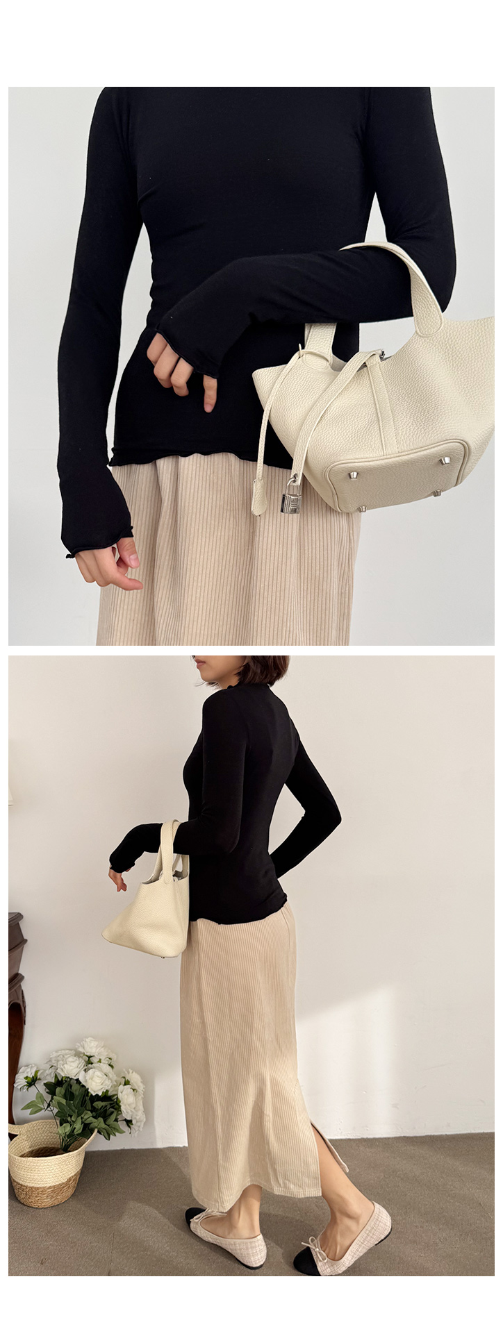 MD's COMMENT ³Ø¶óÀΰú ¹Ø´Ü, ¼Ò¸Å ³¡¿¡ ÀÚ¿¬½º·¯¿î ¿þÀÌºê ¸¶°¨ÀÌ ´õÇØÁ® ´Üµ¶À¸·Î ÀԾ ¹Ô¹ÔÇÏÁö ¾Ê°í, ¾Æ¿ìÅÍ ¼Ó¿¡¼µµ Àº±ÙÈ÷ µ¸º¸¿©¿ä. ³Ê¹« ŸÀÌÆ®ÇÏÁö ¾Ê°Ô ¹Ùµð¸¦ µû¶ó ¸Å²ô·´°Ô °¨±â¸ç ÂËÂËÇÑ ½ÅÃ༺ ´öºÐ¿¡ ÇÏ·ç Á¾ÀÏ ÀԾ Æí¾ÈÇØ¿ä. ¸ñ¼±À» ºÎµå·´°Ô °¨½ÎÁÖ´Â ¹ÝÆú¶ó µðÀÚÀÎÀ¸·Î ´ä´äÇÔ ¾øÀÌ µû¶æÇϱ¸¿ä, ÄÚÆ®³ª °¡µð°Ç, ´ÏÆ® ¼Ó À̳ʷΠ¼ÕÀÌ ÀÚÁÖ °¡½Ç °Å¿¹¿ä. ƯÈ÷ ¶óÀÌÆ®º£ÀÌÁö Ä÷¯´Â ÀºÀºÇÏ°í °í±Þ½º·¯¿ö¼ ÄÚµð Àüü ÅæÀ» È»çÇÏ°Ô »ì·ÁÁÖ°í, ºí·¢Àº ½½¸²ÇØ º¸ÀÌ¸é¼ ½ÃÅ©ÇϰÔ, ±ò²ûÇÑ ¾ÆÀ̺¸¸®´Â µ¥Àϸ® À̳ʷΠȰ¿ëµµ ³ô¾Æ¿ä. ¸ñ¼±¿¡ »ì¦ ¿Ã¶ó¿À´Â ¿þÀÌºê ´öºÐ¿¡ ÄÚµð Àüü°¡ ÇÑ°á ºÎµå·´°í °í±Þ½º·¯¿ö º¸¿©¿ä. À̳ÊÁö¸¸, ´Üµ¶À¸·Î ÀԾ ÃæºÐÈ÷ ¿¹»Û Ƽ¿¹¿ä. °ÃßÇÕ´Ï´Ù! Size TIP ÀüüÀûÀ¸·Î ¿©À¯ ÀÖ´Â ½½¸² ÇÍÀ¸·Î 55~66ºÐµé±îÁö ÆíÇÏ°Ô Âø¿ë °¡´ÉÇØ¿ä. * ¸ðµ¨ (166/49) - Á¤55»çÀÌÁîÀÇ ¸ðµ¨¾ç¿¡°Ô ±ò²ûÇÏ°Ô Àß ¸Â¾Ò¾î¿ä! Èü À¼± »ì¦ °ÉÄ¡´Â ±âÀå°¨. * È¿Á¤ÁåÀå (163/62) - ÇÏüºñ¸¸ÀÇ 66»çÀÌÁîÀä. ¸ö¿¡ ¾Ë¸Â°Ô Ç͵Ǹ鼵µ ÂËÂËÇÑ ÅÙ¼Ç ´öºÐ¿¡ ¿òÁ÷ÀÓÀÌ ÀüÇô ºÒÆíÇÏÁö ¾Ê¾Ò¾î¿ä. ƯÈ÷ ÆÈ±æÀÌ¿Í ±âÀå°¨ ¸ðµÎ ¾ÈÁ¤ÀûÀÌ¶ó ¾Æ¿ìÅÍ ¾È¿¡ ¹ÞÃÄ ÀԾ ³¢Áö ¾Ê°í ´Üµ¶À¸·Î ÀÔÀ» ¶© ½Ç·ç¿§ÀÌ ¸Å²ô·´°Ô Á¤¸®µÅ¿ä. ¼ÒÀç°¡ À¯¿¬ÇÏ°Ô ´Ã¾î³ª¸é¼µµ Èå¹°°Å¸®Áö ¾Ê¾Æ¼ »óü ¶óÀÎÀ» ÀÚ¿¬½º·´°Ô Àâ¾ÆÁÖ°í ¸ñ¼±ºÎÅÍ ¼Õ³¡±îÁö À̾îÁö´Â ¶óÀÎÀÌ Á¤¸» ¿©¸®¿©¸®ÇØ º¸¿©¿ä ¤¾¤¾ Âø¿ëÇßÀ» ¶§ ±º»ìÀÌ µå·¯³ªÁö ¾ÊÀ¸¸é¼ ÇÍÀÌ ºÎµå·´°Ô °¨±â´Ï±î ÆíÇϸ鼵µ ¿©¼º½º·¯¿î ½Ç·ç¿§ÀÌ ¿Ï¼ºµÅ¿ä :) Color & Fabric Ä÷¯´Â ¾ÆÀ̺¸¸®/¶óÀÌÆ®º£ÀÌÁö/ºí·¢. ÀÌ·¸°Ô ¼¼ °¡Áö ³ª¿Ô±¸¿ä. ¾ÆÀ̺¸¸®´Â È»çÇÏ°í ±ú²ýÇÑ º£ÀÌÁö Åæ, ¶óÀÌÆ® º£ÀÌÁö´Â ÀºÀºÇÏ¸é¼ ¾ó±¼ºûÀ» ¹àÇôÁÖ´Â ¿©¸®¿©¸®ÇÑ »ö°¨. ºí·¢Àº °¡Àå ½½¸²ÇÏ°í ¼¼·ÃµÈ ºÐÀ§±â¿¹¿ä. ÂËÂËÇϰí À¯¿¬ÇÑ ÅØ½ºÃ³·Î ¸ö¿¡ ºÎµå·´°Ô °¨±â¸ç, À̳ʷΠÀԱ⠵ü ÁÁÀº µÎ²²°¨ÀÌ¿¡¿ä. °¡º±Áö¸¸ ´Ã¾îÁü ¾øÀÌ ±ò²ûÇÑ ½Ç·ç¿§À» À¯ÁöÇØÁà¿ä. °Ü¿ïö¿¡´Â À̳ʷÎ, º½°¡À»¿£ ´Üµ¶À¸·Î Ȱ¿ë °¡´ÉÇÑ µ¥Àϸ® ÇʼöÅÛÀ̶ó Áö±ÝºÎÅÍ º½±îÁö Âß ¼ÕÀÌ °¡½Ç °Å¿¹¿ä. ÀÚ½ÅÀÖ°Ô Ãßõµå·Á¿ä :)