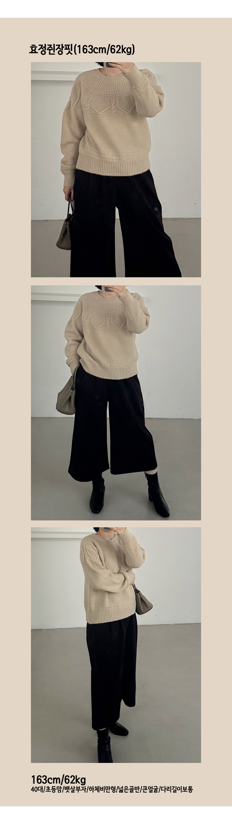 MD's COMMENT ÀÌ ´ÏÆ®´Â óÀ½ ºÃÀ» ¶§ºÎÅÍ ¿äÅ© ÆÐÅÏÀÌ ´«¿¡ µé¾î¿Ô´Âµ¥, ÀԾ´Ï±î ±× ÆÐÅÏ ´öºÐ¿¡ »óü°¡ ±¦È÷ ´ÜÁ¤ÇØ º¸ÀÌ´õ¶ó±¸¿ä. ¿äÅ© Â¥ÀÓÀÌ °úÇÏÁö ¾Ê¾Æ¼ ºóƼÁöÇÑ ´À³¦Àº »ì¦ ÀÖÀ¸¸é¼µµ Ã̽º·´Áö ¾Ê°í, Àüü ºÐÀ§±â´Â µÇ°Ô ³»Ãß·²ÇØ¿ä. Ç͵µ µü ¿¹»Û ÇÍÀÌ¿¡¿ä. ¸ö¿¡ ºÙÁö ¾Ê°í ¿©À¯ Àִµ¥ ºÎÇØ º¸ÀÌÁö ¾Ê°Ô Åö ¶³¾îÁ®¼ ºÎ´ã ¾øÀÌ ÀÔ±â ÁÁ¾Æ¿ä. ´ÏÆ® Çϳª¸¸ ÀÔ¾úÀ» »ÓÀε¥ Äڵ𰡠±¦È÷ Á¤¸®µÅ º¸ÀÌ´Â ´À³¦ÀÌ¶ó µ¥´Ô, ½½·¢½º, ½ºÄ¿Æ®±îÁö ÇÏÀÇ Å©°Ô ¾È °¡¸®°í ´Ù Àß ¾î¿ï·Á¿ä :) ³Ê¹« ²Ù¹Î ´À³¦Àº ½È°í, ±×·¸´Ù°í ³Ê¹« ijÁÖ¾óÇÑ ´ÏÆ®µµ ½ÈÀ» ¶§ µü ¼ÕÀÌ °¡´Â ´ÏÆ®¿¹¿ä. °Ãß! Size TIP ¿ø»çÀÌÁîÀε¥ ½ÅÃ༺ ÁÁ°í »çÀÌÁîµµ Àû´çÈ÷ ¿©À¯ ÀÖ¾î¼ 55~66ºÐµé²² ¸ðµÎ ÃßÃµÇØµå·Á¿ä! * ¸ðµ¨ (166/49) - Á¤55»çÀÌÁîÀÇ ¸ðµ¨¾ç¿¡°Ô ¿©À¯ÀÖ°Ô Àß ¸Â¾Ò¾î¿ä! °ñ¹Ý »ì¦ µ¤¾îÁÖ´Â ±æÀ̰¨. * È¿Á¤ÁåÀå (163/62) - ÇÏüºñ¸¸ÀÇ 66»çÀÌÁîÀä. ÀüüÀûÀ¸·Î ³«³«ÇÑ ÇÍÀ̾ú°í ¾î±ú¼±µµ °úÇÏ°Ô Æ¢Áö ¾Ê¾Æ¼ »óü ¶óÀÎÀÌ ÀÚ¿¬½º·´°Ô ¶³¾îÁ³¾î¿ä. ¼Ò¸Å Åëµµ ¿©À¯ ÀÖ¾î¼ ÆÈ ºÙ´Â ´À³¦ ¾ø¾ú°í, ±âÀåÀº °ñ¹Ý »ì¦ µ¤´Â Á¤µµ¶ó Àüü ÇÍÀÌ ÀÚ¿¬½º·´°Ô ¶³¾îÁ³¾î¿ä. ¿äÅ© ÆÐÅÏ ´öºÐ¿¡ ½Ã¼±ÀÌ À§·Î ¿Ã¶ó°¡¼ ±×·±Áö Àüü ºñÀ²µµ ±¦È÷ ÁÁ¾Æº¸ÀÌ´õ¶ó±¸¿ä :) Color & Fabric Ä÷¯´Â ¾ÆÀ̺¸¸®/º£ÀÌÁö/ºí·¢. ÀÌ·¸°Ô ¼¼ °¡Áö ³ª¿Ô±¸¿ä. ¾à°£ ±î½½°Å¸²ÀÌ ´À²¸Á®¼ ´ÏÆ® ¿¹¹ÎÇϽŠºÐµéÀº ÀÌ³Ê Çϳª ÀÔ°í Âø¿ëÇϽô °É Ãßõµå¸®±¸¿ä. Â¥ÀÓÀÌ ÃÎÃÎÇØ¼ ´Ã¾îÁüÀº ÀûÀº ÆíÀÌ¿¡¿ä. ´Ü»ö ´ÏÆ®º¸´Ù ÈξÀ ´ú ¹Ô¹ÔÇϰí, ³Ê¹« µÎ²®Áöµµ ¾ÊÀº µÎ²²°¨À̶ó ´Üµ¶À¸·Î ÀԱ⿡µµ ÁÁ°í, ÄÚÆ®³ª ÆÐµù ¾È¿¡ À̳ʷεµ ºÎ´ã ¾ø¾î¿ä. ¿äÁòó·³ ´ÏÆ® ÀÚÁÖ ÀÔ°Ô µÇ´Â ½ÃÁð¿¡ µ¥Àϸ®·Î µ¹·Á ÀÔ±â ÁÁÀº ¾ÆÀÌÅÛÀÌ¿¡¿ä :) |