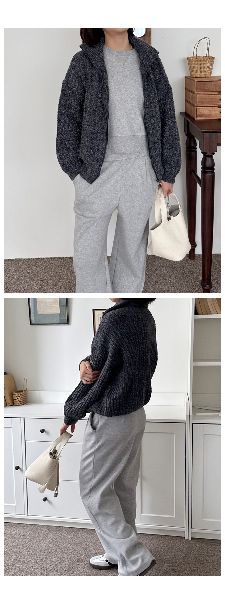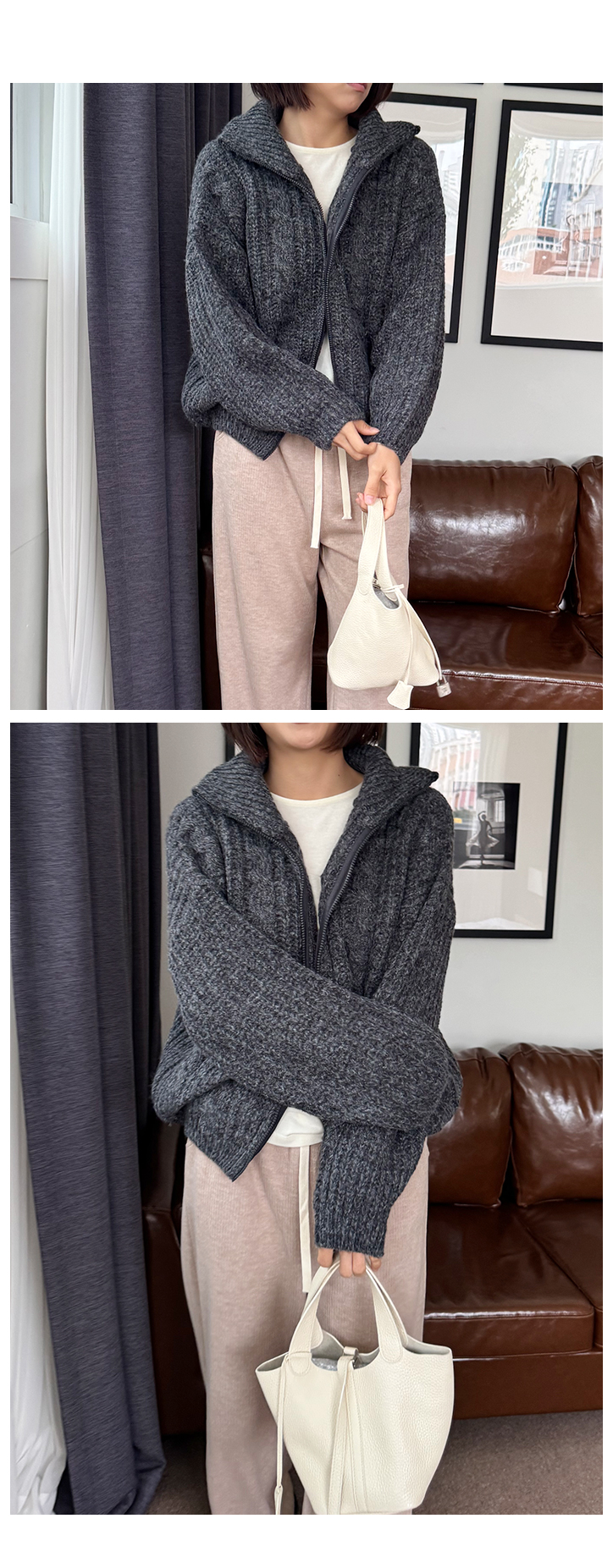 MD's COMMENT Áö±ÝºÎÅÍ Ãʰܿï±îÁö, ¾Æ¿ìÅÍ ¼Ó À̳ʷεµ µü ÁÁÀº Æ÷±ÙÇÑ Â¥ÀÓÀÇ Áý¾÷ °¡µð°ÇÀÌ¿¡¿ä. µµÅèÇÑ µíÇÏÁö¸¸ ¹«°ÌÁö ¾Ê°í, ÀÔÀÚ¸¶ÀÚ µû¶æÇÏ°Ô °¨½ÎÁÖ´Â Æ÷±ÙÇÑ ÅØ½ºÃ³°¡ ¸Å·ÂÀûÀÌ¿¡¿ä. ÁöÆÛ¸¦ ¿Ã¸®¸é ¸ñ±îÁö °¨½ÎÁÖ°í ³»¸®¸é ÀÚ¿¬½º·´°Ô Ä«¶óó·³ ÆîÃÄÁ® ´ÏÆ® Áý¾÷ Çϳª¸¸À¸·Îµµ ½ºÅ¸ÀÏÀÌ ¿Ï¼ºµÅ¿ä. »ì¦ ¿©À¯ Àִ ǰÀÌ¶ó Æ¼¼ÅÃ÷ À§¿¡ Åö °ÉÃĵµ ´ä´äÇÏÁö ¾Ê±¸¿ä, ¼ÕµîÀ» µ¤´Â ¼Ò¸Å ±âÀå ´öºÐ¿¡ ÆÈ¶óÀεµ ÀÚ¿¬½º·´°Ô ¶³¾îÁ®¿ä. ºÎµå·´°í µû¶æÇÑ Ä÷¯°¨, ±×¸®°í ¼¼·ÃµÈ Â¥ÀÓ. FW ½ÃÁð µ¥Àϸ® ¾Æ¿ìÅÍ·Î °·Â Ãßõµå¸³´Ï´Ù! Size TIP ¿©À¯ ÀÖ´Â ÇÍÀ¸·Î 55~66ºÐµé±îÁö ÆíÇÏ°Ô Âø¿ë °¡´ÉÇØ¿ä. * ¸ðµ¨ (166/49) - Á¤55»çÀÌÁîÀÇ ¸ðµ¨¾ç¿¡°Ô ¿©À¯ÀÖ°Ô Àß ¸Â¾Ò¾î¿ä! °ñ¹ÝÀ» »ì¦ µ¤´Â ±âÀå°¨. * È¿Á¤ÁåÀå (163/62) - ÇÏüºñ¸¸ÀÇ 66»çÀÌÁîÀä. ÀüüÀûÀ¸·Î ³«³«ÇÏ¸é¼ ÆíÇÏ°Ô ¸Â¾Ò¾î¿ä. µÎ²²°¨ÀÌ ¹¬Á÷ÇÏÁö ¾Ê¾Æ¼ ´ä´äÇÏÁö ¾Ê°í ¾È¿¡ ±âº»Æ¼³ª ¾ãÀº Æú¶ó Çϳª ¹ÞÃÄ ÀԱ⠵ü ÁÁ¾Æ¿ä. ¼Ò¸Å´Â ¼ÕµîÀ» µ¤´Â ±âÀåÀ¸·Î ¿©¸®¿©¸®ÇÑ ºÐÀ§±â°¡ ³ª°í, ¹Ø´Ü ½Ãº¸¸®°¡ »ì¦ Àâ¾ÆÁ༠ÆÛÁö´Â ´À³¦ ¾øÀÌ ÇÍÀÌ ¾ÈÁ¤°¨ ÀÖ°Ô ¶³¾îÁ®¿ä. ÁöÆÛ¸¦ ³¡±îÁö ¿Ã¸®¸é ÇÏÀ̳ØÃ³·³ ¸ñÀ» Æø °¨½ÎÁ༠¸ÓÇ÷¯ ¾øÀ̵µ µû¶æÇϱ¸¿ä, ÁöÆÛ¸¦ »ì¦ ³»·Á Ä«¶óó·³ ÆîÄ¡¸é ¾ó±¼¼±ÀÌ ÈξÀ °¼¸§ÇØ º¸¿©¿ä. °¡À»¿£ ´Üµ¶À¸·Î, ÇѰܿ ̄ ÄÚÆ® ¼Ó À̳ʷεµ ÃæºÐÈ÷ Ȱ¿ë °¡´ÉÇÑ ¾ÆÀÌÅÛÀÌ¿¡¿ä. Ãâ±Ù·è¿¡µµ, ¸¶½Ç·è¿¡µµ ÀÚ¿¬½º·´°Ô ¾î¿ï·Á¼ ¿äÁò ±³º¹Ã³·³ ¼ÕÀÌ °¡´õ¶ó±¸¿ä. Åö °ÉÃĵµ ¸Ú½º·´°í, Æ÷±ÙÇÏ°Ô °¨½ÎÁÖ´Â ´À³¦ÀÌ Á¤¸» ÁÁ¾Æ¿ä. Ãßõµå¸³´Ï´Ù! Color & Fabric Ä÷¯´Â ¿ÀÆ®º£ÀÌÁö/Â÷Äݱ׷¹ÀÌ. ÀÌ·¸°Ô µÎ °¡Áö ³ª¿Ô±¸¿ä. ¿ÀÆ®º£ÀÌÁö´Â ÀºÀºÇÏ°Ô µû¶æÇÑ Ä÷¯°¨À¸·Î FW ½ÃÁð µ¥Àϸ®·è¿¡ ºÎµå·´°Ô ³ì¾Æµå´Â »ö°¨ÀÌ¿¡¿ä. ¾ó±¼ºûÀ» ÀÚ¿¬½º·´°Ô ¹àÇôÁÖ¸é¼ ¹àÀº ÇÏÀÇ, ÁøÇÑ ÇÏÀÇ ¸ðµÎ¿¡ Àß ¾î¿ï·Á¿ä. Â÷Äݱ׷¹ÀÌ´Â ¹«°Ô°¨ÀÌ ´À²¸Áö´Â µöÅæÀ¸·Î, ´ÏÆ® Â¥ÀÓÀÌ °¡Àå °í±Þ½º·´°Ô µå·¯³ª´Â Ä÷¯¿¹¿ä. ´ÜÁ¤Çϸ鼵µ ¼¼·ÃµÈ ÀλóÀÌ »ì¾Æ³ª¿ä. µµÅèÇϰí Èû ÀÖ´Â ´ÏÆ® Â¥ÀÓÀ¸·Î ÇüۨÀÌ Èå¹°°Å¸®Áö ¾Ê°í źźÇÏ°Ô ÀâÇô¿ä. ÀÔÀ»¼ö·Ï ºÎµå·´°Ô À¯¿¬ÇØÁö´Â Âø¿ë°¨À̶ó ¼ÕÀÌ ÀÚÁÖ °¡½Ç °Å¿¹¿ä. °ÃßÇÕ´Ï´Ù!