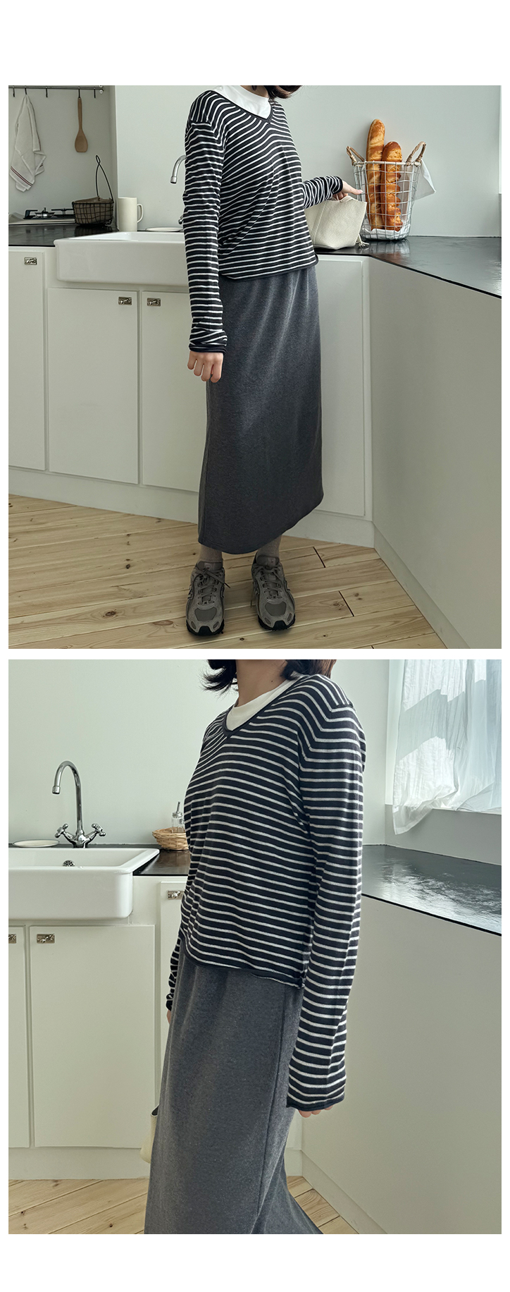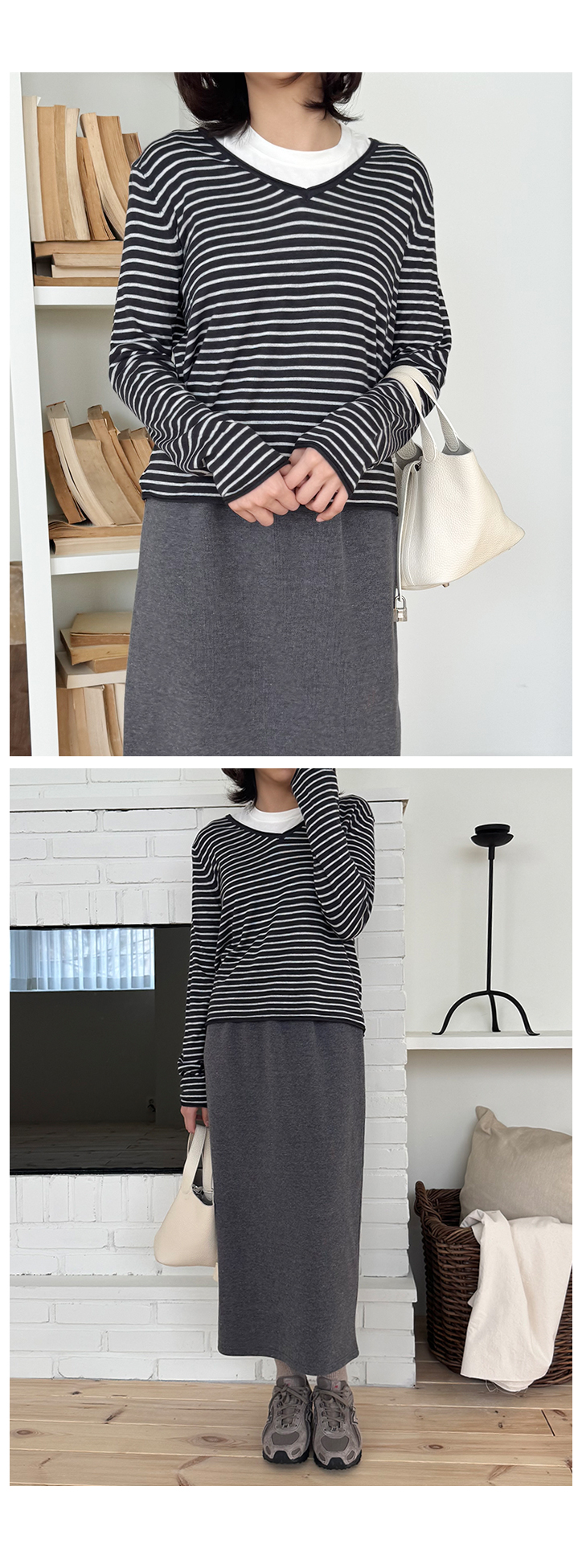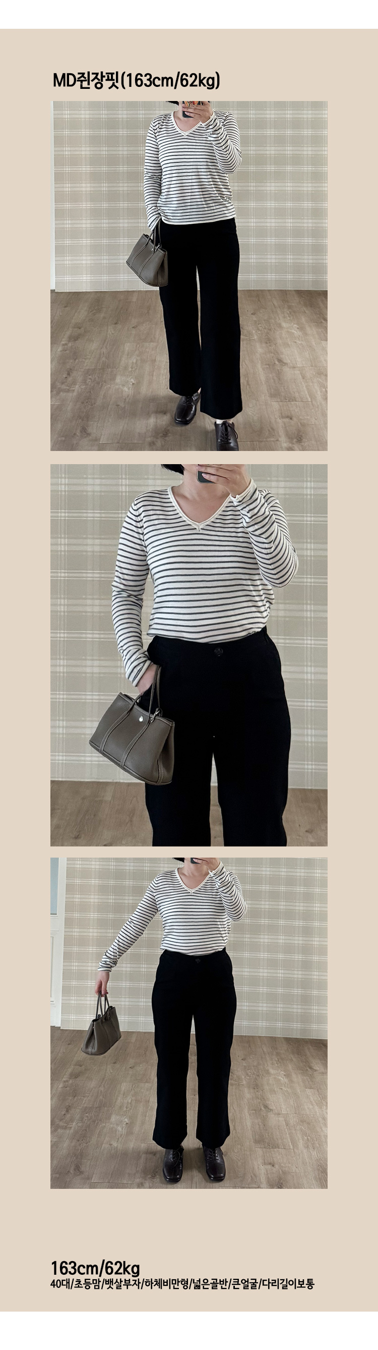 MD's COMMENT ÀÜÀÜÇÑ ½ºÆ®¶óÀÌÇÁ ÆÐÅÏ¿¡ ºêÀÌ³Ø ¶óÀÎÀÌ ¿¹»Û ´ÏƮƼ¿¹¿ä. ÀÌ·± ½ºÆ®¶óÀÌÇÁ ´ÏÆ®´Â »ç½Ç ¸Å³â ºñ½ÁÇÏ°Ô ³ª¿ÀÁö¸¸, ¸ñ¼±ÀÌ ´ä´äÇÏÁö ¾ÊÀº ºêÀ̳ؿ¡ ÇÍÀÌ ÀÚ¿¬½º·´°Ô ¶³¾îÁ®¼ ÀÔ¾úÀ» ¶§ ÈξÀ ¿©¸®¿©¸®ÇØ º¸ÀÌ´Â ´À³¦ÀÌ ÀÖ´õ¶ó±¸¿ä. ¸ö¿¡ µü ºÙ´Â ÇÍÀÌ ¾Æ´Ï¶ó »ì¦ ¿©À¯ÀÖ°Ô ¶³¾îÁö´Â ÇÍÀ̶ó ´Üµ¶À¸·Î ÀԾ ºÎ´ã ¾ø°í ½½·¢½º, µ¥´Ô, ½ºÄ¿Æ®±îÁö ¿©±âÀú±â ¸ÅÄ¡Çϱâ ÁÁ¾Ò¾î¿ä. ÀÜ ½ºÆ®¶óÀÌÇÁ¶ó Æ¢´Â ´À³¦ ¾øÀÌ Æ÷ÀÎÆ® ÁÖ±â ÁÁ±¸¿ä. µ¥´ÔÀ̶û ÀÔÀ¸¸é ijÁÖ¾óÇϰÔ, ½½·¢½º¶û ÀÔÀ¸¸é ±ò²ûÇÑ ´À³¦À̶ó µî¿ø·è, µ¿³×·è, ¸¶Æ®·è, ¿©ÇàÁö·è, ÀÏ»ó·èÀ¸·Î ÆíÇÏ°Ô ÀÔ±â ÁÁÀº ´ÏƮƼ¿¹¿ä. ¾ã°í ºÎµå·¯¿î ´ÏÆ® ¿ø´ÜÀ̶ó Áö±ÝºÎÅÍ °£Àý±â±îÁö ÀÔ±â ÁÁ±¸¿ä. ¾Æ¿ìÅÍ ¾È¿¡ À̳ʷεµ ±ò²ûÇÏ°í ´Üµ¶À¸·Î ÀԾ ¹Ô¹ÔÇÏÁö ¾Ê¾Æ¼ ¼ÕÀÌ ÀÚÁÖ °¥ ½ºÅ¸ÀÏÀÌ¿¡¿ä :) Size TIP »çÀÌÁî´Â ¿ø»çÀÌÁîÀä, ÀüüÀûÀ¸·Î »ì¦ ¿©À¯ÀÖ´Â ÇÍÀ̶ó 55~66ºÐµé±îÁö ¸ðµÎ ÃßÃµÇØµå·Á¿ä! * ¸ðµ¨ (168/49) - Á¤55»çÀÌÁîÀÇ ¸ðµ¨¾ç¿¡°Ô ¿©À¯ÀÖ°Ô Àß ¸Â¾Ò¾î¿ä! °ñ¹Ý Á¤µµ ¿À´Â ±æÀ̰¨. * È¿Á¤ÁåÀå (163/62) - ÇÏüºñ¸¸ÀÇ 66»çÀÌÁîÀä. ÀÌ·± ¾ãÀº ´ÏƮƼ´Â ±¦È÷ ¸ö¿¡ ºÙÀ¸¸é ºÎ´ã½º·¯¿îµ¥, ÀÌ°Ç »ì¦ ¿©À¯ÀÖ´Â ÇÍÀ̶ó ¹è ºÎºÐµµ ¸¹ÀÌ µå·¯³ªÁö ¾Ê°í ÆíÇÏ°Ô ÀÔ±â ÁÁ¾Ò¾î¿ä! ºêÀ̳ØÀ̶ó ¸ñ¼±µµ ½Ã¿øÇØ º¸ÀÌ°í ½½·¢½º³ª µ¥´Ô¿¡ ³Ö¾î ÀԾ ÇÍÀÌ ÀÚ¿¬½º·´°Ô ¶³¾îÁ®¼ ÁÁ´õ¶ó±¸¿ä. ±âº»Æ¼Ã³·³ ÆíÇÏ°Ô ÀÔ±â ÁÁÀºµ¥ ½ºÆ®¶óÀÌÇÁ ÆÐÅÏ ´öºÐ¿¡ ¹Ô¹ÔÇÏÁö ¾Ê¾Æ¼ ´õ ¸¶À½¿¡ µé¾ú¾î¿ä :) °Ãß! Color & Fabric Ä÷¯´Â µöÂ÷ÄÝ/±×·¹ÀÌ/·¹µå. ÀÌ·¸°Ô ¼¼ °¡Áö ³ª¿Ô±¸¿ä. µöÂ÷ÄÝÀº Â÷ºÐÇÏ°í ±ò²ûÇÑ ´À³¦, ±×·¹ÀÌ´Â ºÎµå·´°í µ¥Àϸ®ÇÑ ´À³¦, ·¹µå´Â Æ÷ÀÎÆ® ÁÖ±â ÁÁÀº Ä÷¯¿¹¿ä. ¾ÆÁÖ ºÎµå·¯¿î ´ÏÆ® ¿ø´ÜÀ̶ó Âø¿ë°¨µµ ÆíÇÏ°í µÎ²®Áö ¾Ê¾Æ °£Àý±â ½ÃÁ𿡠ƯÈ÷ Àß ÀÔ¾îÁö½Ç °Å¿¹¿ä. µ¥´Ô, ½½·¢½º, ½ºÄ¿Æ® ¾îµð¿¡³ª ÆíÇÏ°Ô ¸ÅÄ¡Çϱâ ÁÁÀº µ¥Àϸ® ½ºÆ®¶óÀÌÇÁ ´ÏƮƼÀÔ´Ï´Ù :) °ÃßÇÕ´Ï´Ù!