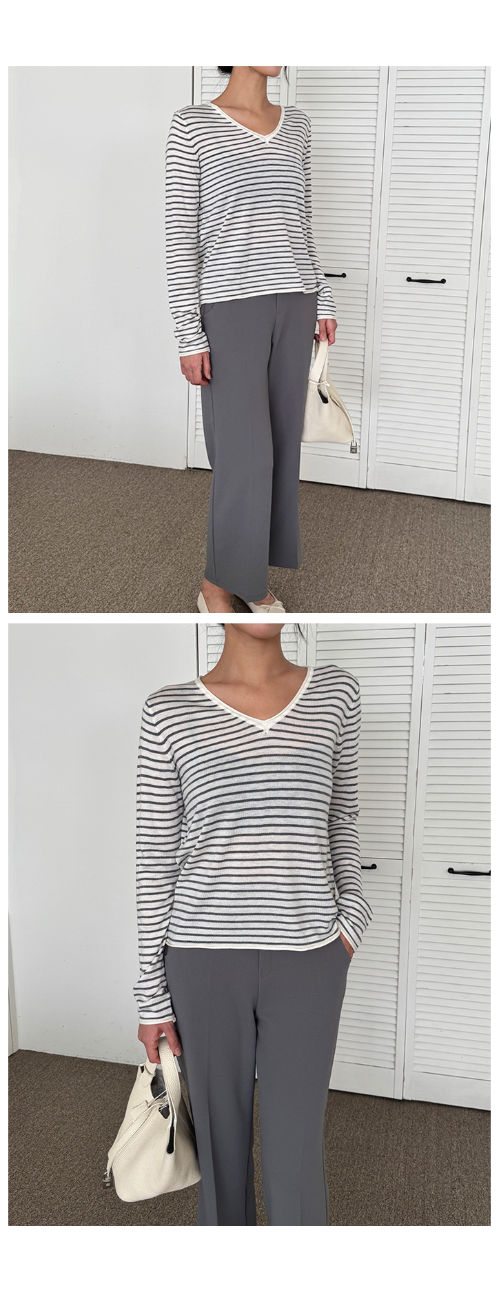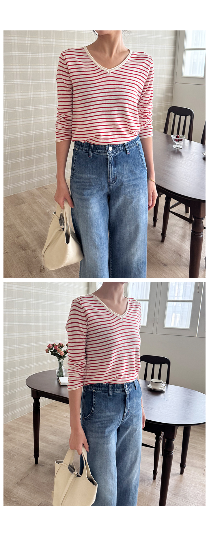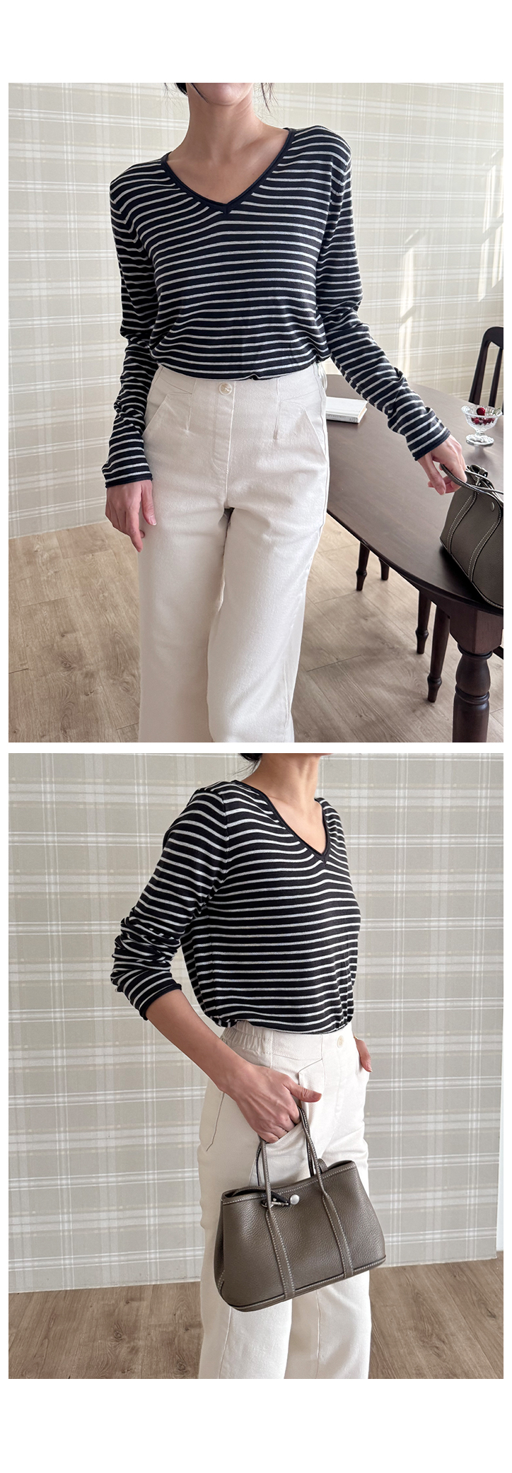 MD's COMMENT ÀÜÀÜÇÑ ½ºÆ®¶óÀÌÇÁ ÆÐÅÏ¿¡ ºêÀÌ³Ø ¶óÀÎÀÌ ¿¹»Û ´ÏƮƼ¿¹¿ä. ÀÌ·± ½ºÆ®¶óÀÌÇÁ ´ÏÆ®´Â »ç½Ç ¸Å³â ºñ½ÁÇÏ°Ô ³ª¿ÀÁö¸¸, ¸ñ¼±ÀÌ ´ä´äÇÏÁö ¾ÊÀº ºêÀ̳ؿ¡ ÇÍÀÌ ÀÚ¿¬½º·´°Ô ¶³¾îÁ®¼ ÀÔ¾úÀ» ¶§ ÈξÀ ¿©¸®¿©¸®ÇØ º¸ÀÌ´Â ´À³¦ÀÌ ÀÖ´õ¶ó±¸¿ä. ¸ö¿¡ µü ºÙ´Â ÇÍÀÌ ¾Æ´Ï¶ó »ì¦ ¿©À¯ÀÖ°Ô ¶³¾îÁö´Â ÇÍÀ̶ó ´Üµ¶À¸·Î ÀԾ ºÎ´ã ¾ø°í ½½·¢½º, µ¥´Ô, ½ºÄ¿Æ®±îÁö ¿©±âÀú±â ¸ÅÄ¡Çϱâ ÁÁ¾Ò¾î¿ä. ÀÜ ½ºÆ®¶óÀÌÇÁ¶ó Æ¢´Â ´À³¦ ¾øÀÌ Æ÷ÀÎÆ® ÁÖ±â ÁÁ±¸¿ä. µ¥´ÔÀ̶û ÀÔÀ¸¸é ijÁÖ¾óÇϰÔ, ½½·¢½º¶û ÀÔÀ¸¸é ±ò²ûÇÑ ´À³¦À̶ó µî¿ø·è, µ¿³×·è, ¸¶Æ®·è, ¿©ÇàÁö·è, ÀÏ»ó·èÀ¸·Î ÆíÇÏ°Ô ÀÔ±â ÁÁÀº ´ÏƮƼ¿¹¿ä. ¾ã°í ºÎµå·¯¿î ´ÏÆ® ¿ø´ÜÀ̶ó Áö±ÝºÎÅÍ °£Àý±â±îÁö ÀÔ±â ÁÁ±¸¿ä. ¾Æ¿ìÅÍ ¾È¿¡ À̳ʷεµ ±ò²ûÇÏ°í ´Üµ¶À¸·Î ÀԾ ¹Ô¹ÔÇÏÁö ¾Ê¾Æ¼ ¼ÕÀÌ ÀÚÁÖ °¥ ½ºÅ¸ÀÏÀÌ¿¡¿ä :) Size TIP »çÀÌÁî´Â ¿ø»çÀÌÁîÀä, ÀüüÀûÀ¸·Î »ì¦ ¿©À¯ÀÖ´Â ÇÍÀ̶ó 55~66ºÐµé±îÁö ¸ðµÎ ÃßÃµÇØµå·Á¿ä! * ¸ðµ¨ (168/49) - Á¤55»çÀÌÁîÀÇ ¸ðµ¨¾ç¿¡°Ô ¿©À¯ÀÖ°Ô Àß ¸Â¾Ò¾î¿ä! °ñ¹Ý Á¤µµ ¿À´Â ±æÀ̰¨. * È¿Á¤ÁåÀå (163/62) - ÇÏüºñ¸¸ÀÇ 66»çÀÌÁîÀä. ÀÌ·± ¾ãÀº ´ÏƮƼ´Â ±¦È÷ ¸ö¿¡ ºÙÀ¸¸é ºÎ´ã½º·¯¿îµ¥, ÀÌ°Ç »ì¦ ¿©À¯ÀÖ´Â ÇÍÀ̶ó ¹è ºÎºÐµµ ¸¹ÀÌ µå·¯³ªÁö ¾Ê°í ÆíÇÏ°Ô ÀÔ±â ÁÁ¾Ò¾î¿ä! ºêÀ̳ØÀ̶ó ¸ñ¼±µµ ½Ã¿øÇØ º¸ÀÌ°í ½½·¢½º³ª µ¥´Ô¿¡ ³Ö¾î ÀԾ ÇÍÀÌ ÀÚ¿¬½º·´°Ô ¶³¾îÁ®¼ ÁÁ´õ¶ó±¸¿ä. ±âº»Æ¼Ã³·³ ÆíÇÏ°Ô ÀÔ±â ÁÁÀºµ¥ ½ºÆ®¶óÀÌÇÁ ÆÐÅÏ ´öºÐ¿¡ ¹Ô¹ÔÇÏÁö ¾Ê¾Æ¼ ´õ ¸¶À½¿¡ µé¾ú¾î¿ä :) °Ãß! Color & Fabric Ä÷¯´Â µöÂ÷ÄÝ/±×·¹ÀÌ/·¹µå. ÀÌ·¸°Ô ¼¼ °¡Áö ³ª¿Ô±¸¿ä. µöÂ÷ÄÝÀº Â÷ºÐÇÏ°í ±ò²ûÇÑ ´À³¦, ±×·¹ÀÌ´Â ºÎµå·´°í µ¥Àϸ®ÇÑ ´À³¦, ·¹µå´Â Æ÷ÀÎÆ® ÁÖ±â ÁÁÀº Ä÷¯¿¹¿ä. ¾ÆÁÖ ºÎµå·¯¿î ´ÏÆ® ¿ø´ÜÀ̶ó Âø¿ë°¨µµ ÆíÇÏ°í µÎ²®Áö ¾Ê¾Æ °£Àý±â ½ÃÁ𿡠ƯÈ÷ Àß ÀÔ¾îÁö½Ç °Å¿¹¿ä. µ¥´Ô, ½½·¢½º, ½ºÄ¿Æ® ¾îµð¿¡³ª ÆíÇÏ°Ô ¸ÅÄ¡Çϱâ ÁÁÀº µ¥Àϸ® ½ºÆ®¶óÀÌÇÁ ´ÏƮƼÀÔ´Ï´Ù :) °ÃßÇÕ´Ï´Ù!
